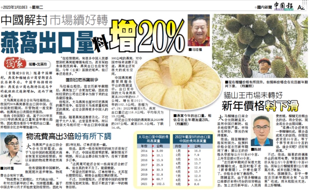 China's unblocked market continues to improve, and the export volume of bird's nest is expected to increase by 20%