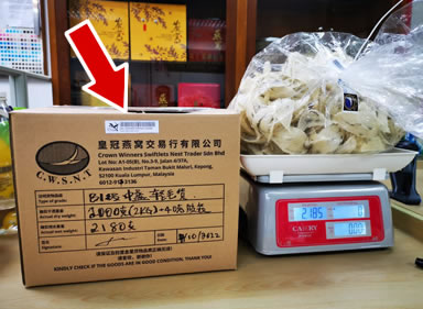 4.) After the bidding transaction is concluded, the bird's nest should not be sprayed with more than 7% water, and the company's platform will tie the bar code to lock the bird's nest transparent plastic bag, put it on the scale for its exact weight and take a close-up photo (must see its weight clearly. ),
